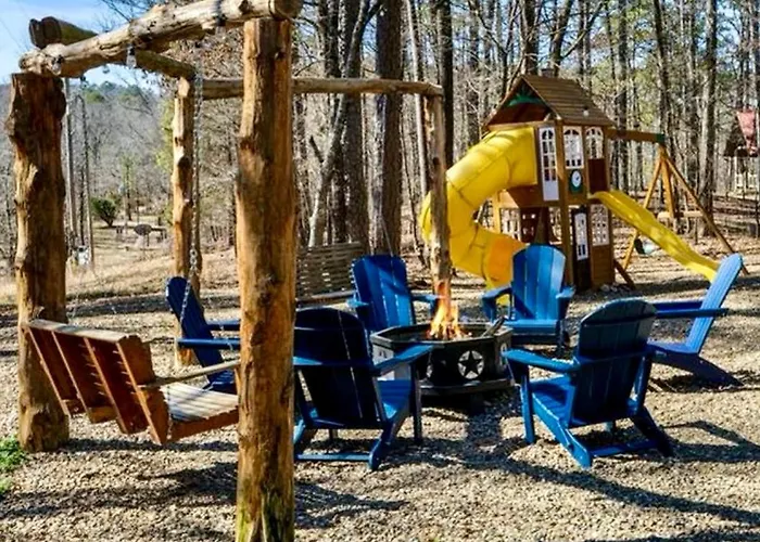 Enjoying garden view, the interior also includes a sofa. Featuring an adjoining terrace and a sitting area, the 1-bathroom villa is fitted with air conditioning for additional comfort. Cozy Cabin 3Br, Hot Tub, Playset, Near Everything! comes with a bathroom with a walk-in shower and a separate toilet. There are also bath sheets.